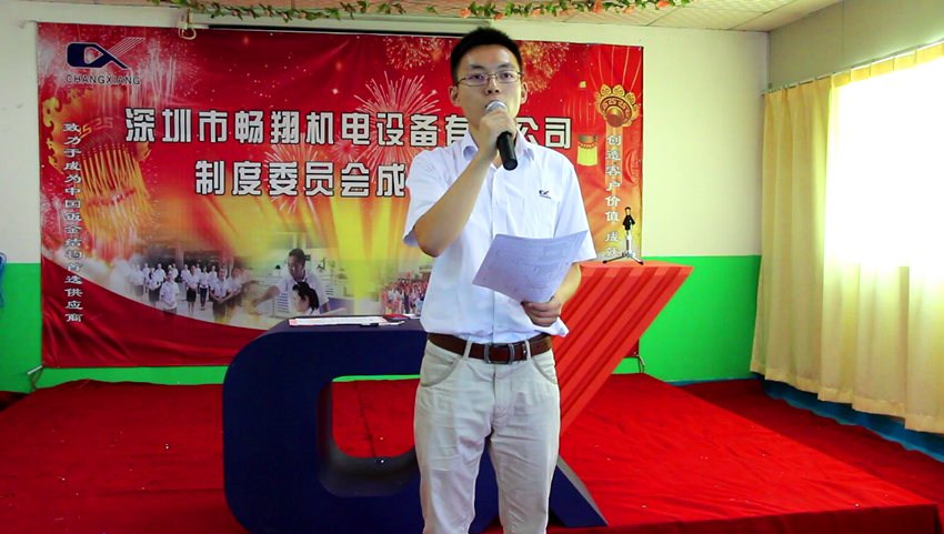 2014年10月29日,對深圳市暢翔機電設(shè)備有限公司,對所有的暢翔人而言,是一個特殊而又偉大的日子。這一天,我公司制度委員會成立儀式正式啟動,這標志著我公司管理制度更上一個臺階。制度委員會將站在公司的長遠發(fā)展和員工利益的立場上,制定出科學合理的管理制度,并做到制度執(zhí)行第一人。